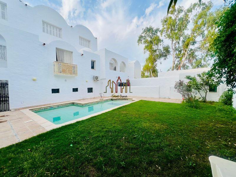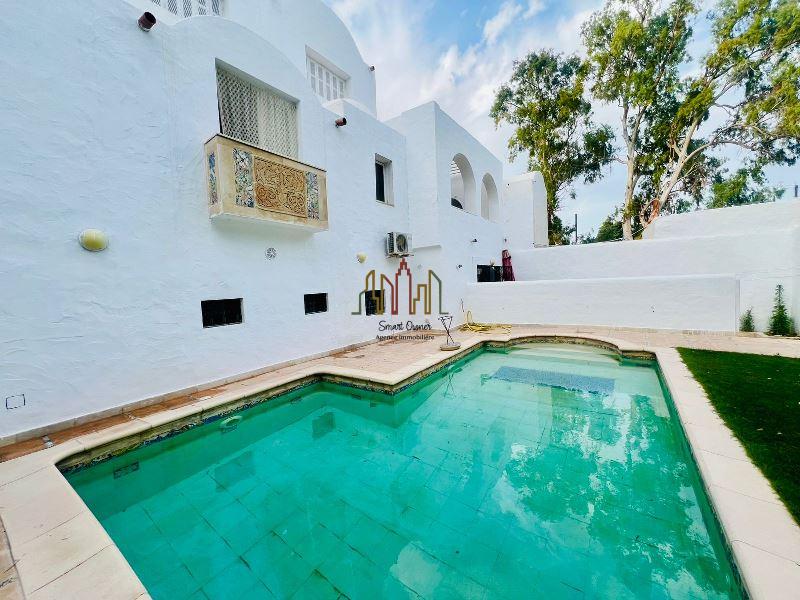 A louer pour vos vacances chez l’agence SMART OWNER immobilière Hammamet, une coquette maison avec piscine de style arabesque meublée située dans un quartier calme à Hammamet Nord zone Kharouba.