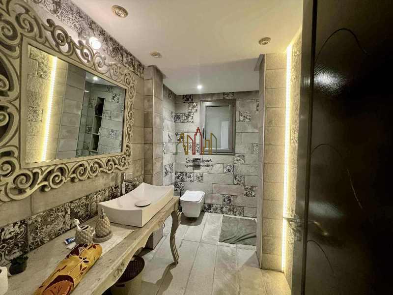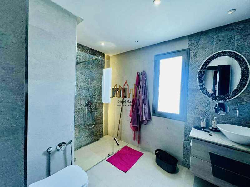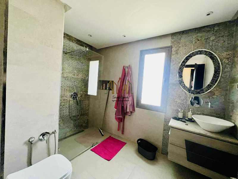 Le rez de chaussée se compose d’un grand salon, une cuisine moderne bien équipée, une suite, une chambre à coucher et une salle d’eau d’invités.