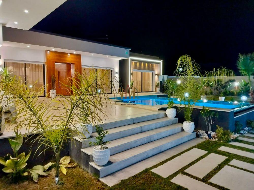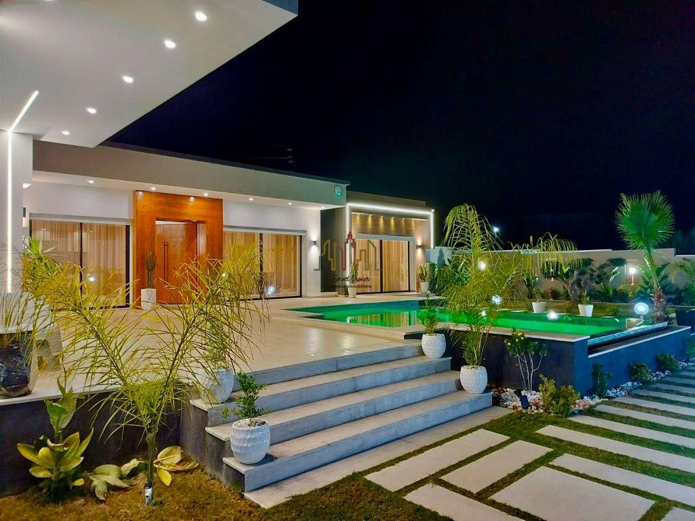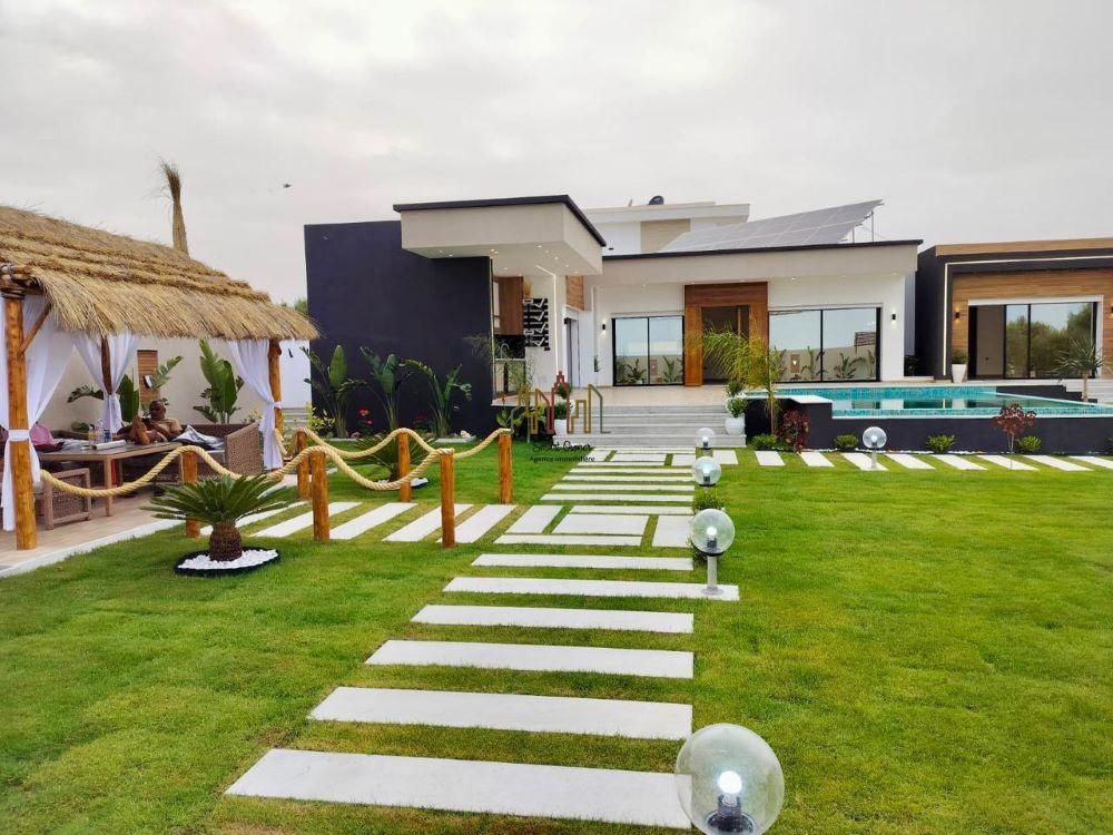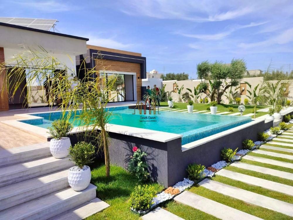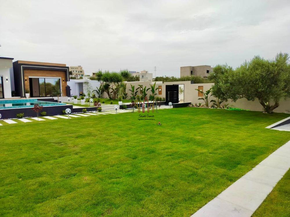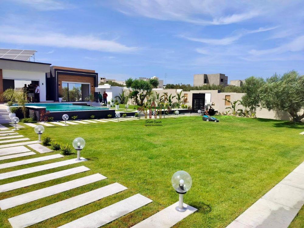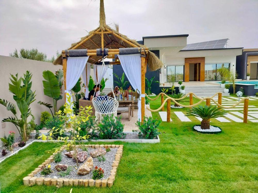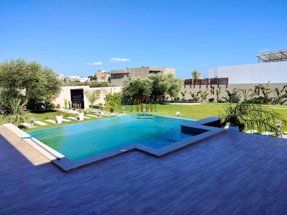 A louer pour vos vacances chez l’agence SMART OWNER immobilière Hammamet, une somptueuse villa de plain pied bien située dans quartier calme et sécurisé à Hammamet Sud zone Sidi Hammed.