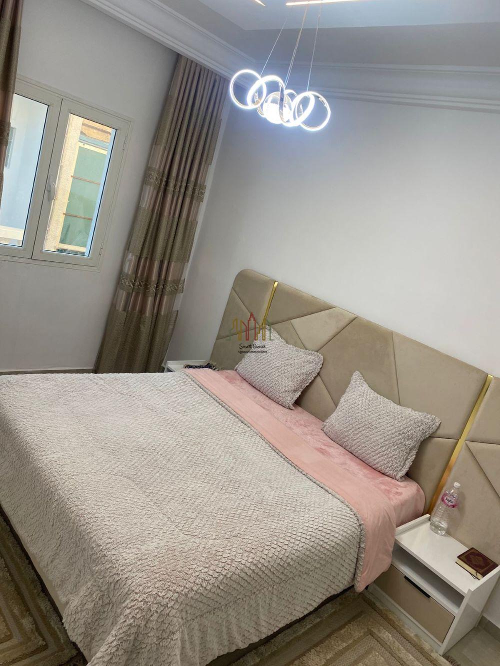 A louer pour vos vacances chez l’agence SMART OWNER immobilière Hammamet, un bel appartement de type S+2 situé dans un quartier sécurisé à Hammamet Nord zone Kharouba.