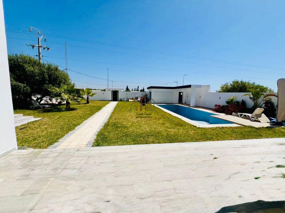 A louer pour vos vacances chez l’agence SMART OWNER immobilière Hammamet, une magnifique villa avec piscine située dans un quartier bien sécurisé à Hammamet Sud .