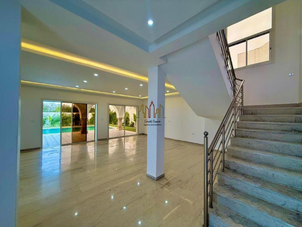 La villa fait 270 m² orné de haut plafond avec de voûtes croiser et des coupoles, comporte au rez de chaussée, un grand salon qui donne sur une jolie véranda et piscine, une salle à manger, une cuisine bien équipée et aménagée, une salle d ‘eau d’invitées et une chambre à coucher.
