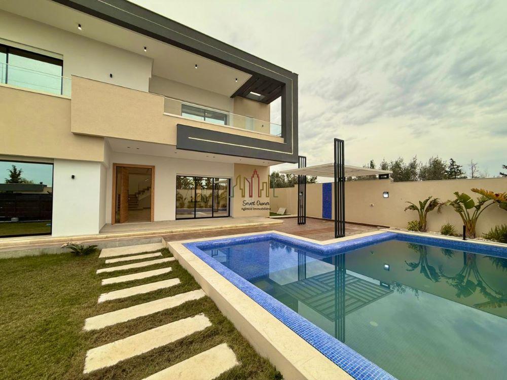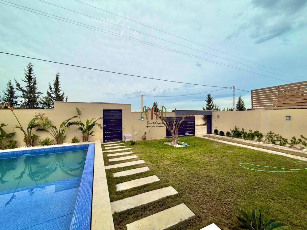 À l’extérieur, la villa dispose d’un jardin aménagé, d’une piscine et d’une place de parking , le tout dans un environnement calme et recherché, idéal pour une résidence de standing ou un investissement.