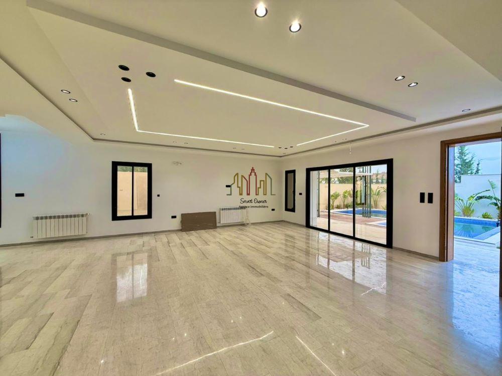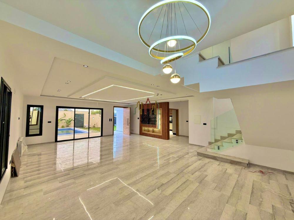 A vendre chez l’agence SMART OWNER Immobilière Hammamet, une villa moderne située à Hammamet sud zone monchar. Édifiée sur une superficie de 500m², cette villa se distingue par son design contemporain et ses espaces bien pensés.