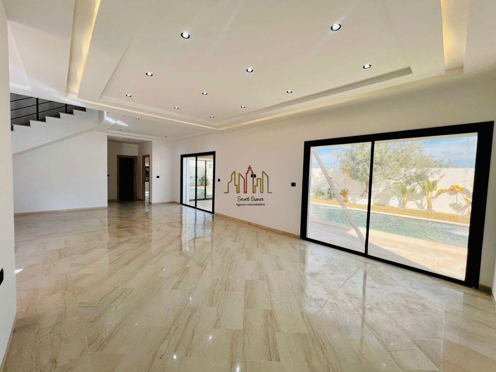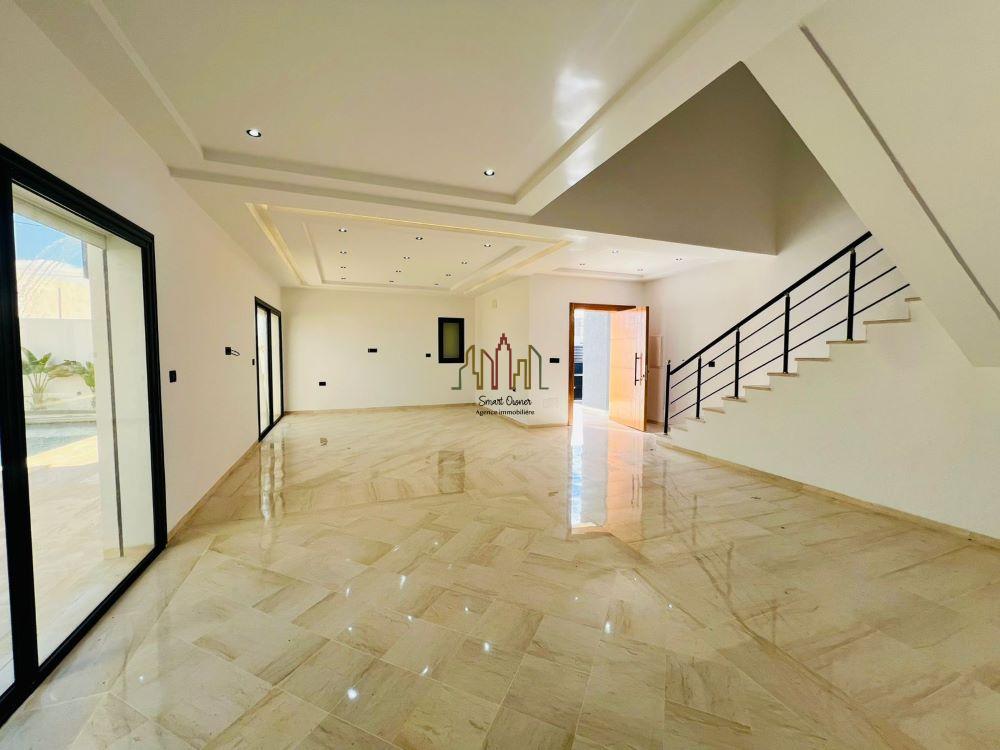 A vendre chez SMART OWNER Immobilière Hammamet, une magnifique villa toute neuve qui s’étend sur un beau terrain de 587 m² située à Hammamet sud dans un quartier résidentiel calme et bien sécurisé.