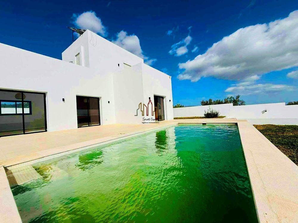A vendre chez l’agence SMART OWNER Immobilière Hammamet, une luxueuse villa avec piscine, située à Hammamet Route jedidi.