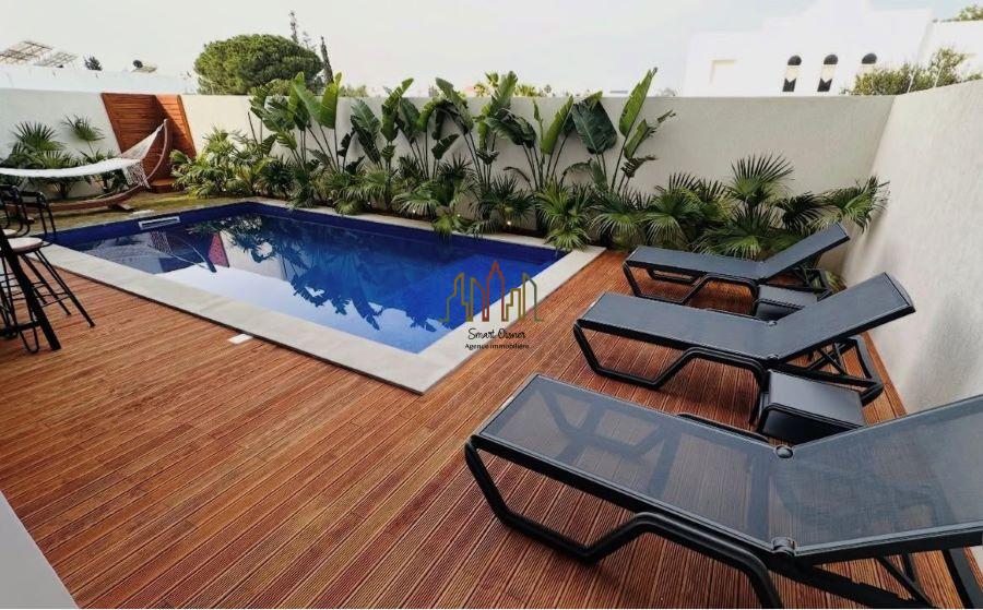 A vendre chez l’agence SMART OWNER immobilière Hammamet, un bel appartement de type S+3 avec piscine privée sis au rez de chaussée situé dans une résidence calme et agréable à Hammamet Sud à proximité de l’hôtel Phénicia et Les Orangers.