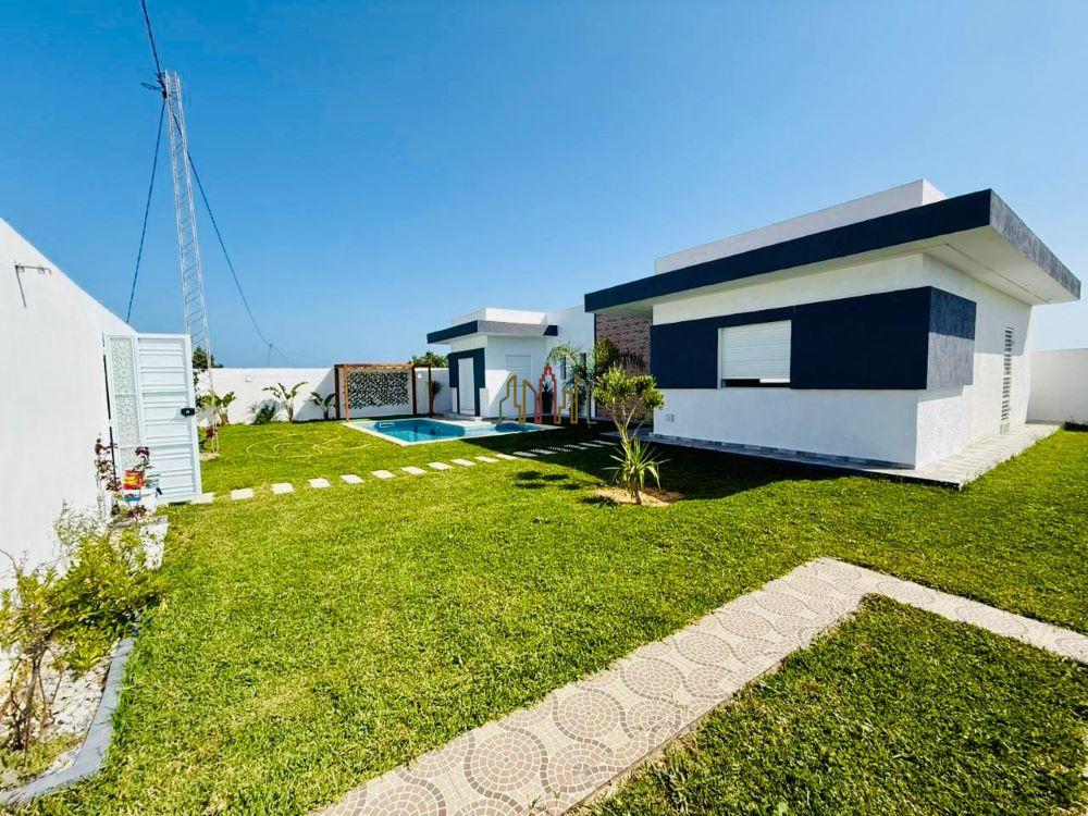 A vendre chez l’agence SMART OWNER immobilière Hammamet, une belle villa de plain pieds nouvellement construite situé dans un quartier calme et bien sécurisé à Hammamet Sud .