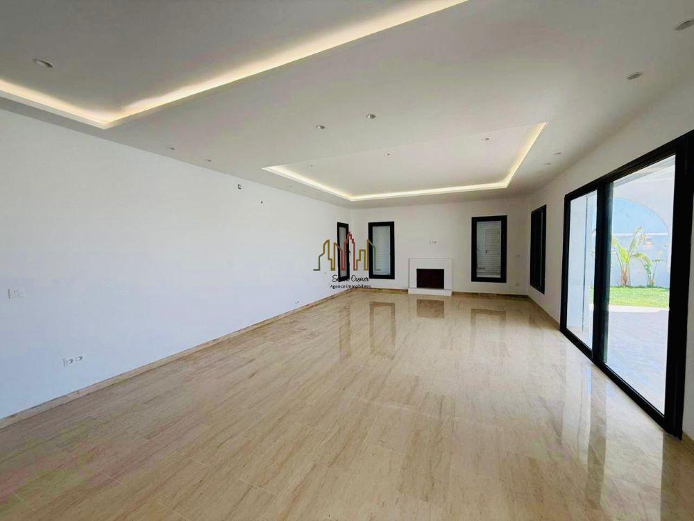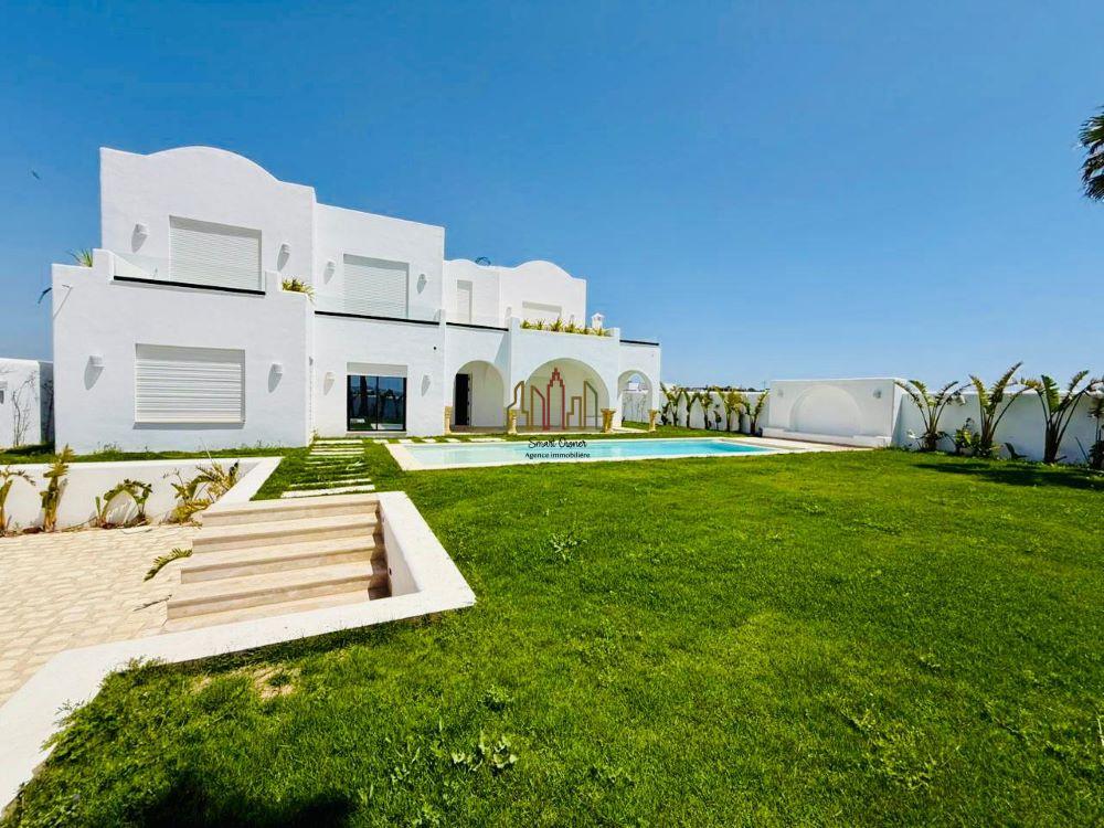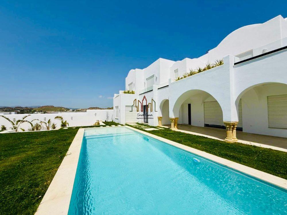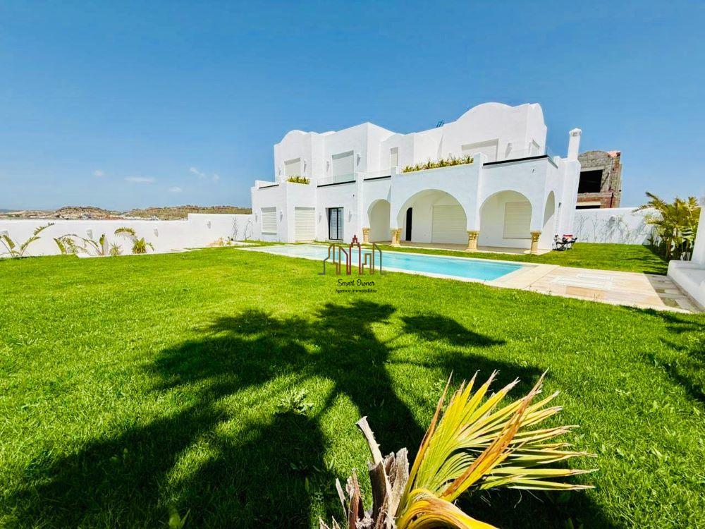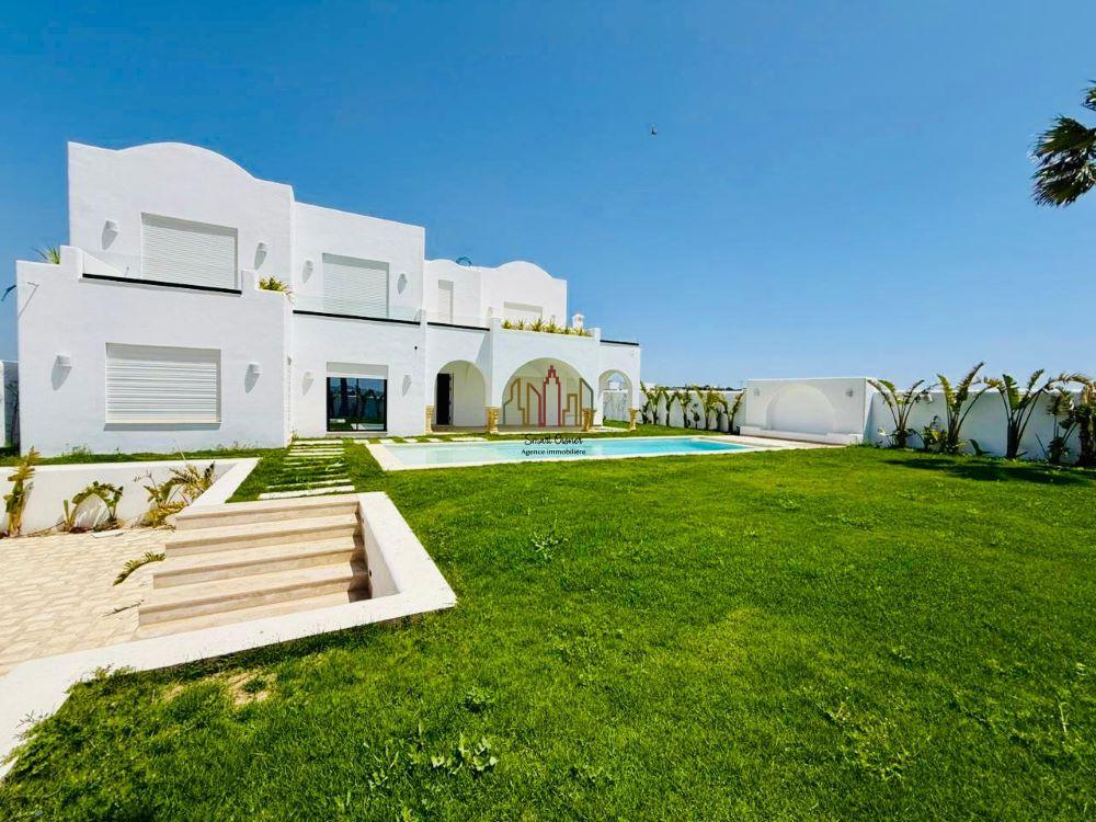 A vendre chez l’agence SMART OWNER immobilière Hammamet, une belle villa de style arabesque moderne nouvellement construite, située dans un quartier calme et bien sécurisé à Hammamet sud. La villa est établie sur deux niveaux: Le rez de chaussée comporte un spacieux et lumineux salon, une suite parentale, une cuisine moderne bien équipée, deux chambres et une salle d’eau d’invités. Arrivant à l’étage, on trouve trois suites avec leurs propre salles de bain et dressings et une belle terrasse. A l’extérieur vous bénéficiez d’un joli jardin paysagé et gazonné, une belle piscine, des caméras de surveillance, un système d’alarme ainsi qu’un parking pour plusieurs voitures. La villa est équipée de chauffage central et de climatiseur.