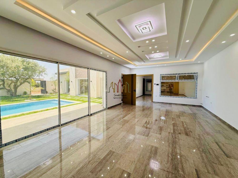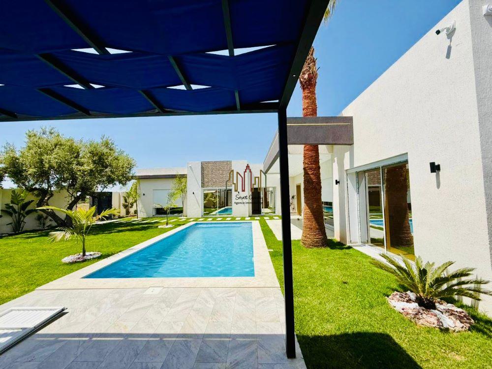 A vendre chez l’agence SMART OWNER immobilière Hammamet, une belle villa de plain pieds nouvellement construite situé dans un quartier calme et bien sécurisé à Hammamet Sud.